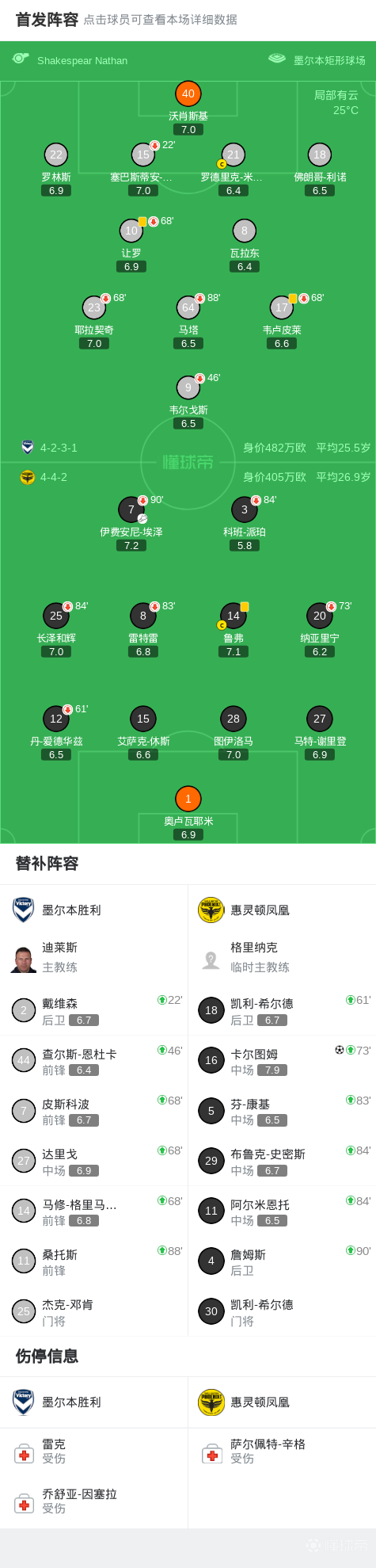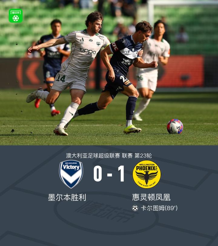 北京时间4月5日澳大利亚足球超级联赛第23轮,墨尔本胜利主场对阵惠灵顿凤凰。卡尔图姆比赛尾声破门。最终比分墨尔本胜利0-1惠灵顿凤凰。