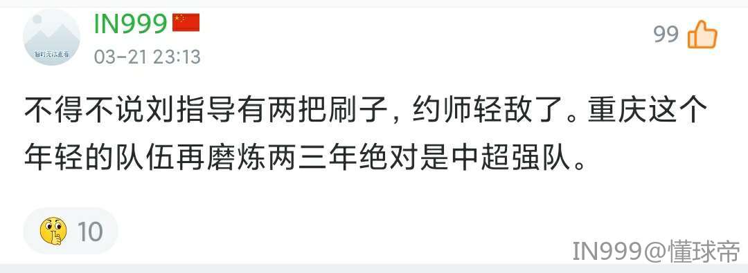 上一场就能看出来刘建业有两把刷子,果然是个有头脑的年轻教练。重庆这些年轻人今年会成为强队杀手。