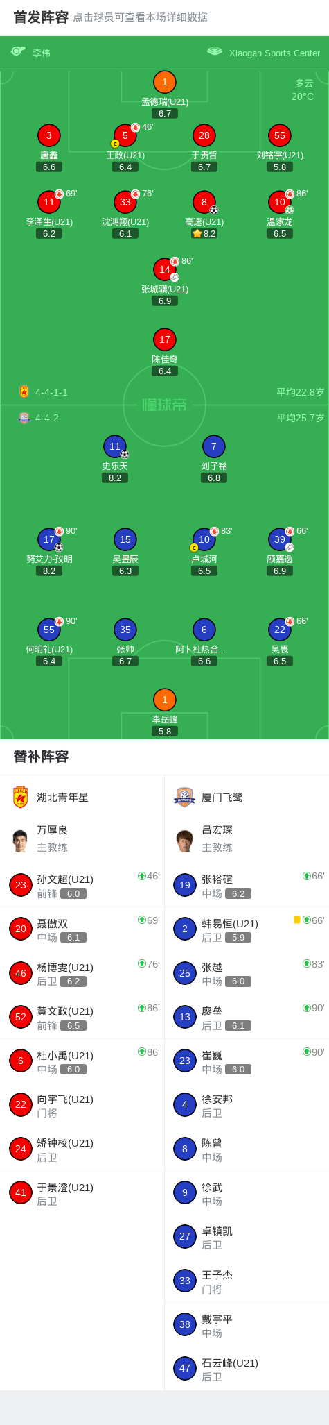 懂球帝首页>动态> 湖北青年星2-2厦门飞鹭,高速破僵,史乐天救主