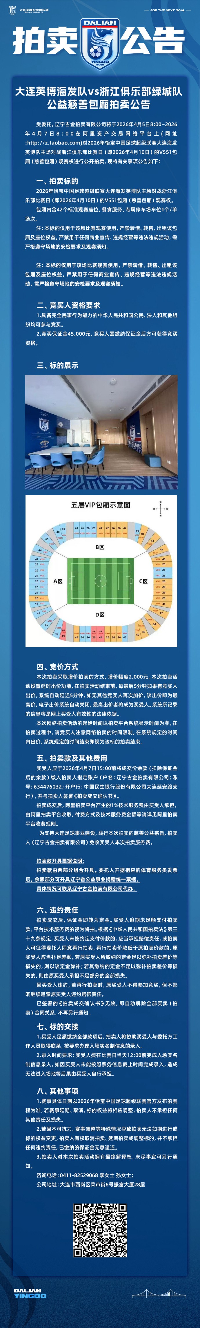 扫描下载懂球帝首页>动态> 大连英博vs浙江将公开拍卖慈善包厢观赛权,起拍价50000元