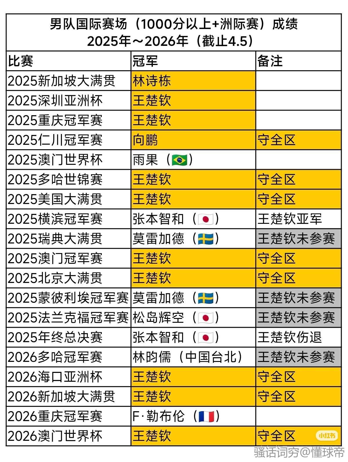 都说他是最菜的领军,历史上哪有一个领军这待遇的,这过得啥日子…近一年来其他人进四强的次数加一块都没他多吧,甚至时不时还让他打三项,外协除了台林现在哪个一哥还兼三的,张本都不咋兼了