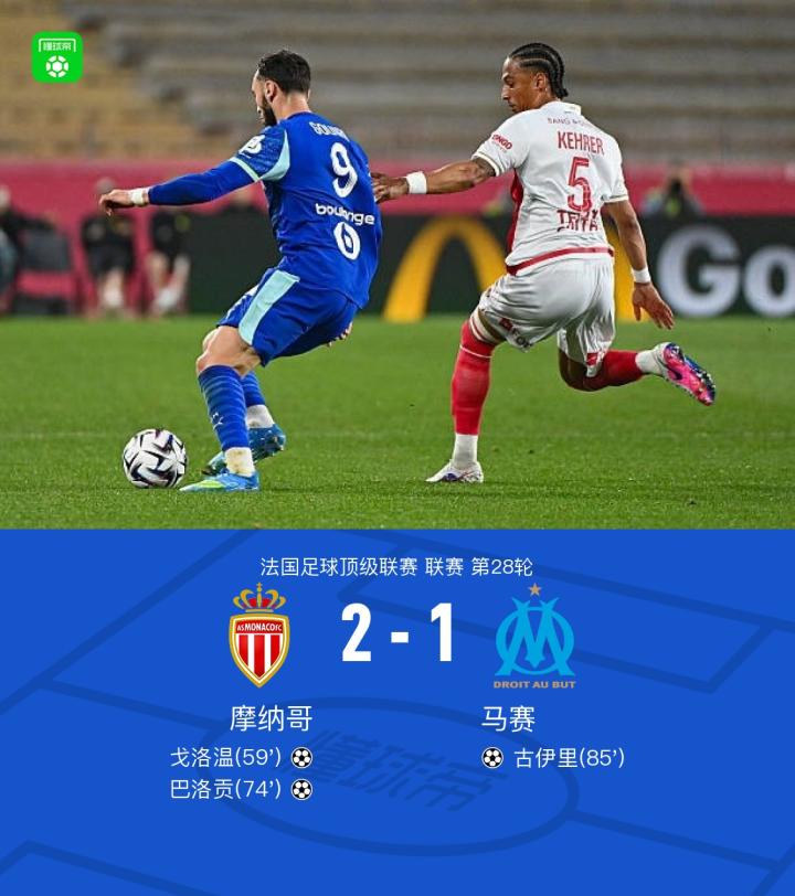 扫描下载懂球帝首页>动态> 摩纳哥2-1马赛,戈洛温破僵,巴洛贡建功