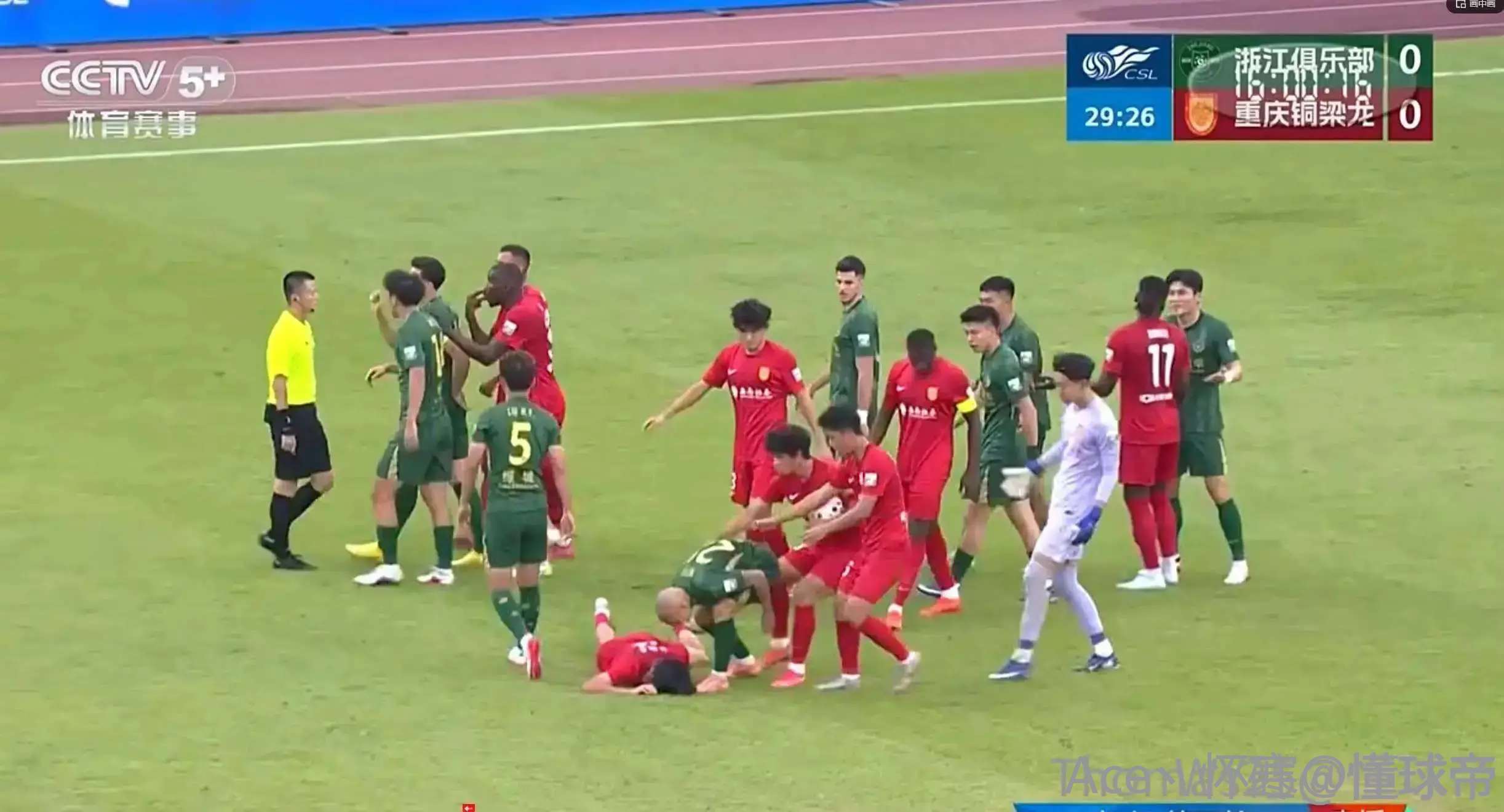 还好队友拉住了米特里册,他发火要去干架他可能都打不过比他高一个头的重庆球员。而且还可能跟张稀哲一样停10场