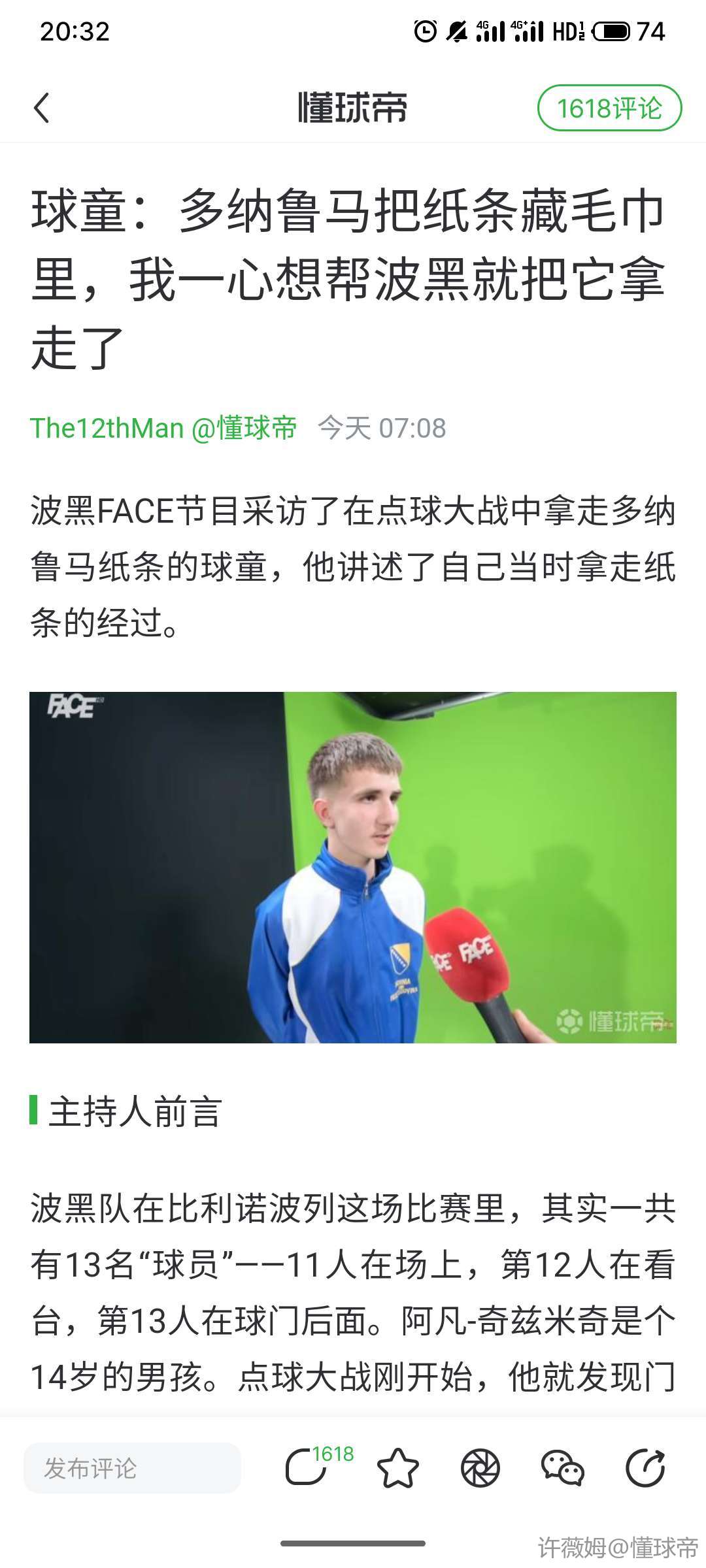 扫描下载懂球帝首页>动态> 波黑门将:多纳鲁马试图撕掉我写的点球小抄,他有违体育道德