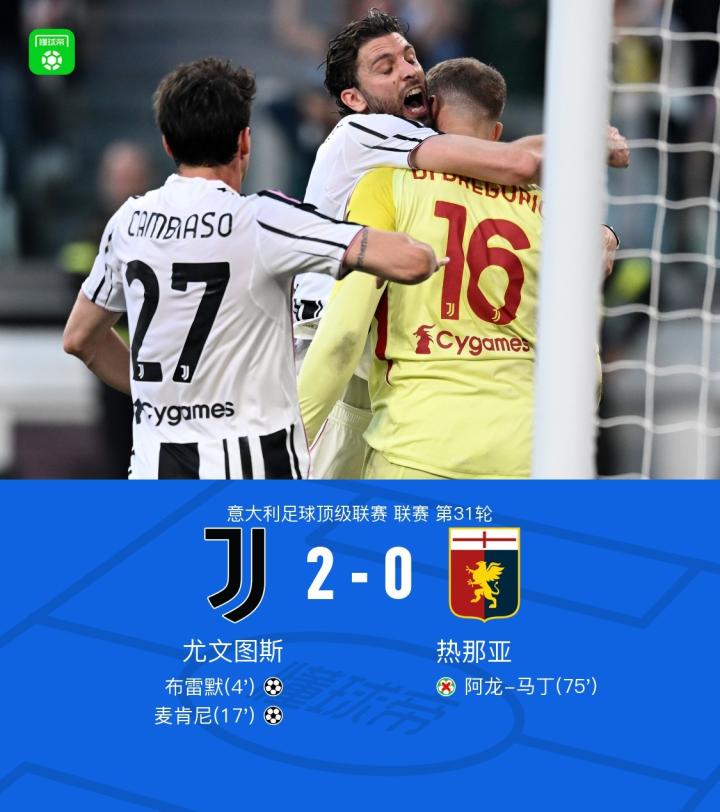 04-07 02:50进球助尤文紧咬欧冠区,麦肯尼当选尤文2-0热那亚全场最佳