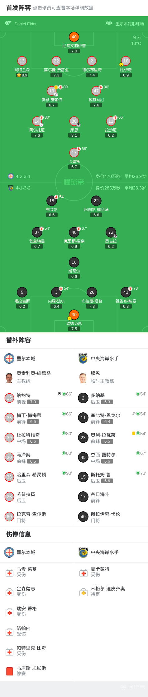 第22分钟,库恩长途奔袭后推射破门,墨尔本城1-0领先