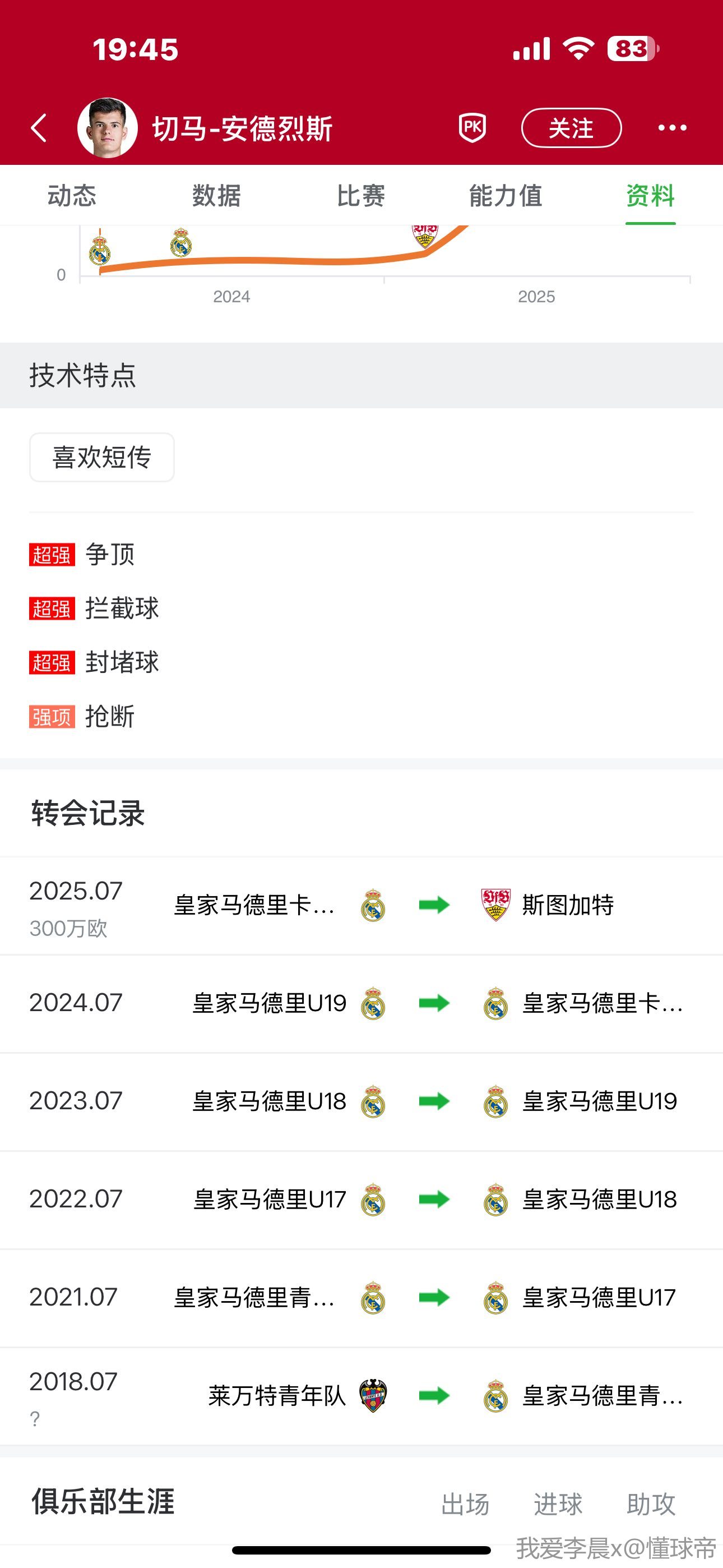 斯图加特球员切马-安德烈斯在接受《阿斯报》采访时谈到了自己为皇马、西班牙国家队效力的梦想,他表示,自己经常关注基米希和阿莱士-加西亚踢球,并称为皇马效力是自己的梦想。