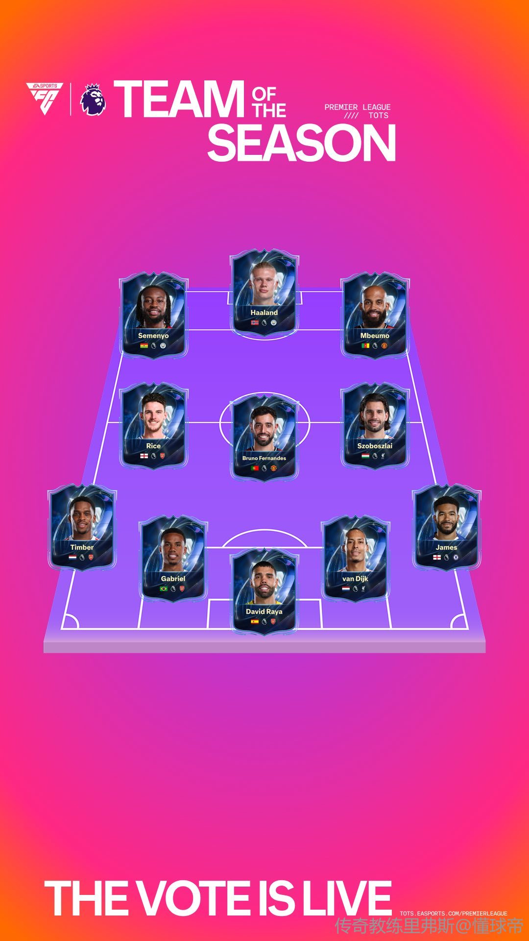 扫描下载懂球帝首页>动态> FC26英超赛季最佳阵容提名:哈兰德、B费在列,阿森纳6人入围