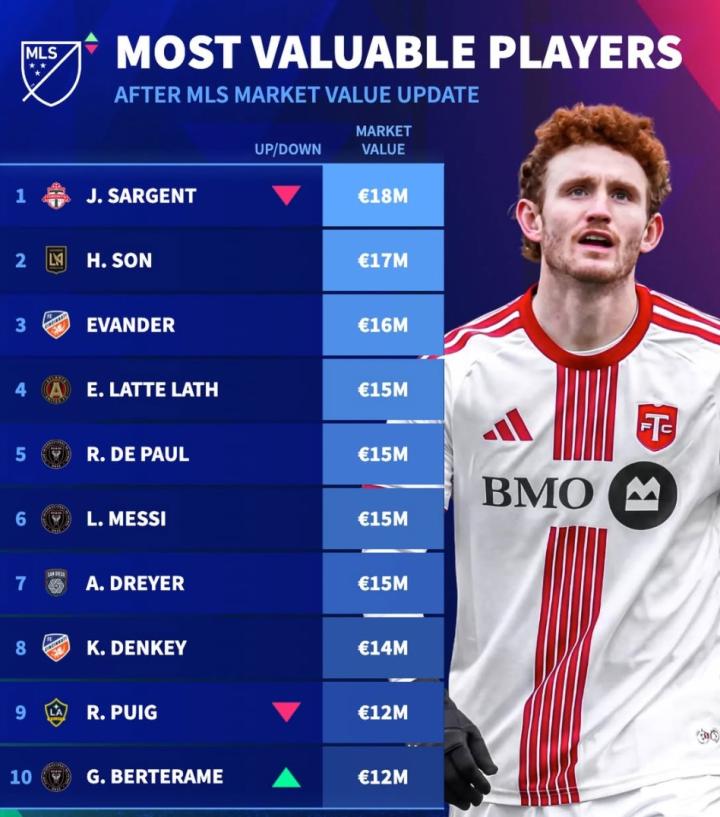 扫描下载懂球帝首页>动态> 德转更新美职联身价前10:梅西1500万欧第4,孙兴慜1700万第2