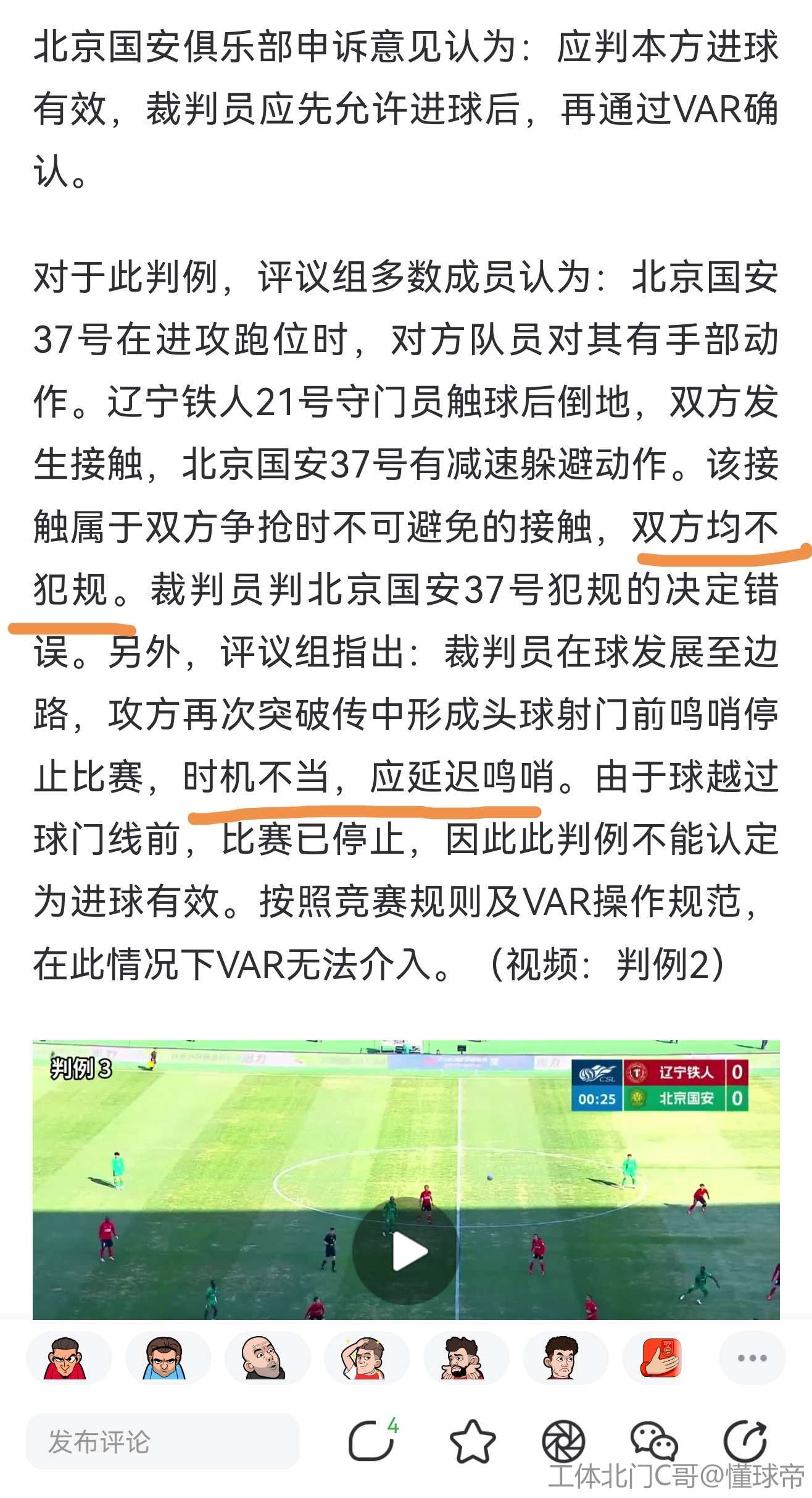 北京国安俱乐部申诉意见认为:应判本方进球有效,裁判员应先允许进球后,再通过VAR确认。