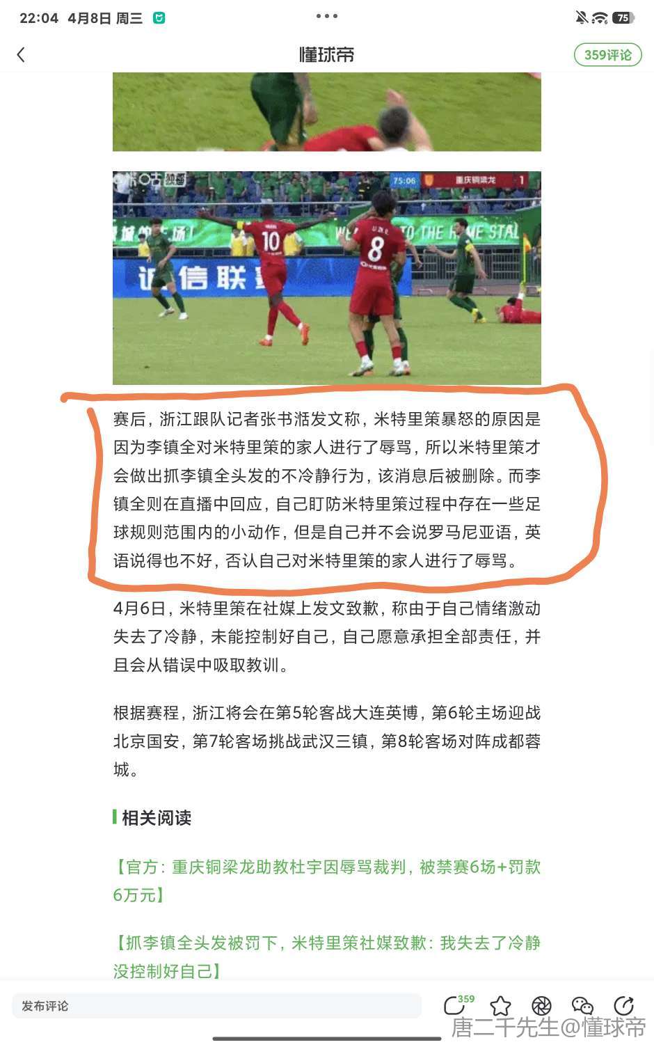 浙江狂撒钱找记者洗,我还以为能撤销米特里策红牌, 禁赛十场铜梁龙球员,再把输的分给浙江呢,结果犯错的,被追加处罚的还是浙江啊,洗的我还以为是重庆呢 给连续违反足协纪律准则的人洗地,我只能评价三观不正