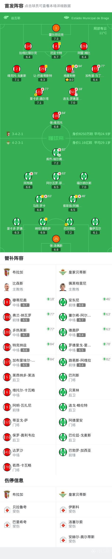 第61分钟,阿布德造点,埃尔南德斯点射破门,布拉加1-1贝蒂斯