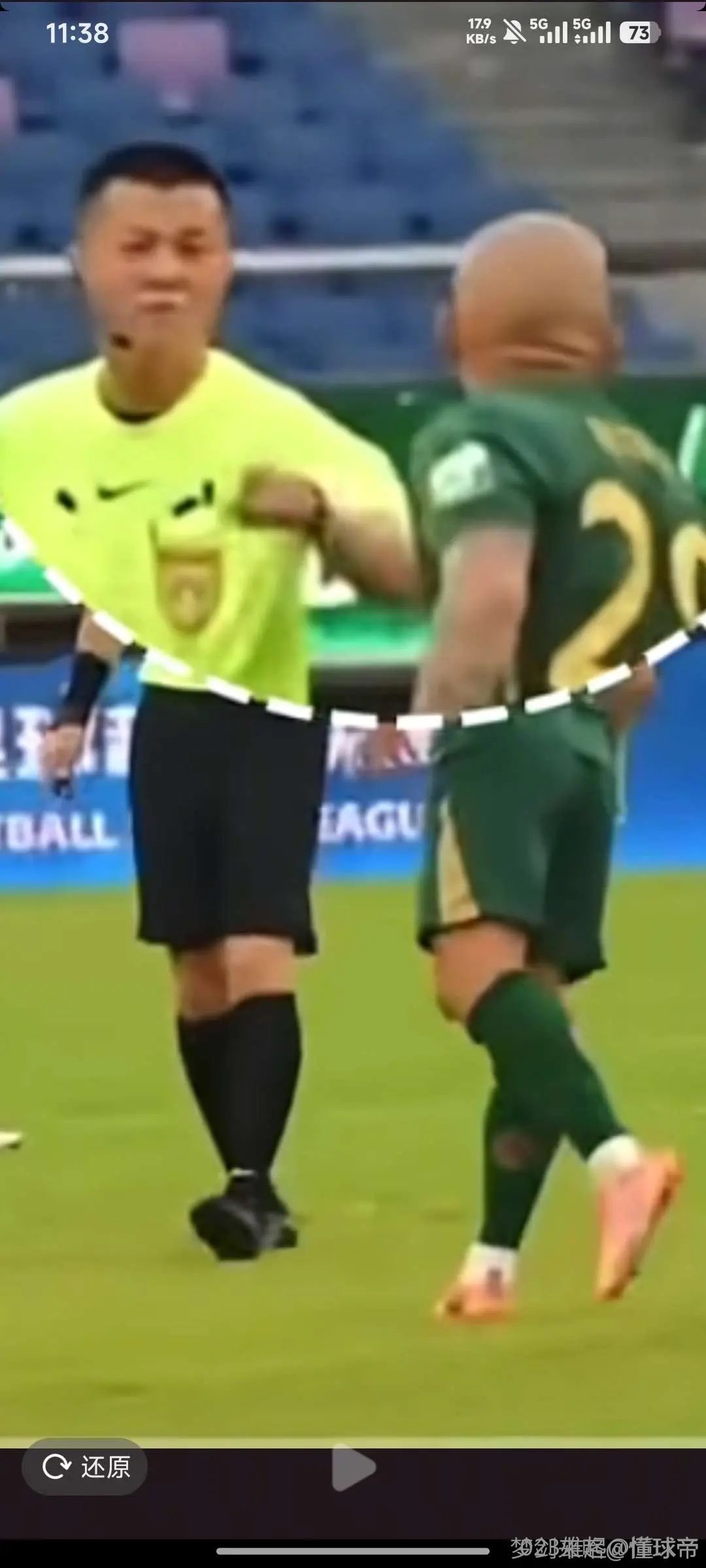 大家看看米策朝裁判吐的啥,米策先不尊重裁判,李镇全去找裁判处罚米,裁判不理,李镇全抱怨对着空气讲了几句,这就被浙江球迷抓住了bug,就没完没了