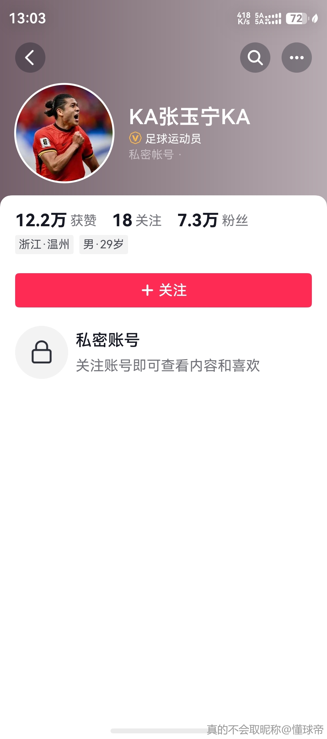 张玉宁现在还是私密账号呢