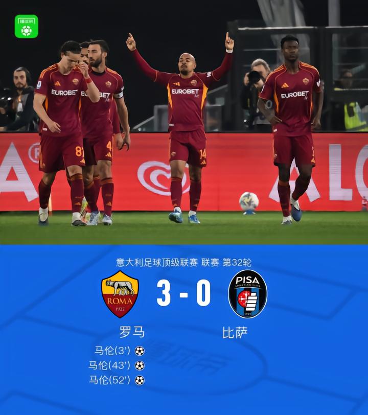 扫描下载懂球帝首页>动态> 罗马3-0比萨,伦施献助攻,马伦帽子戏法