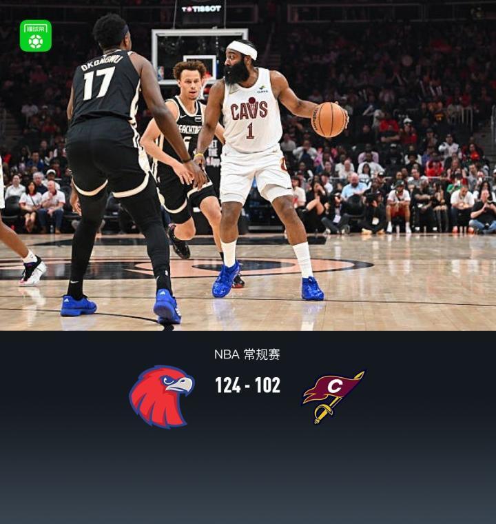 第四节老鹰基斯珀特拿下8分,骑士普罗克特拿下15分,最终老鹰124-102战胜骑士