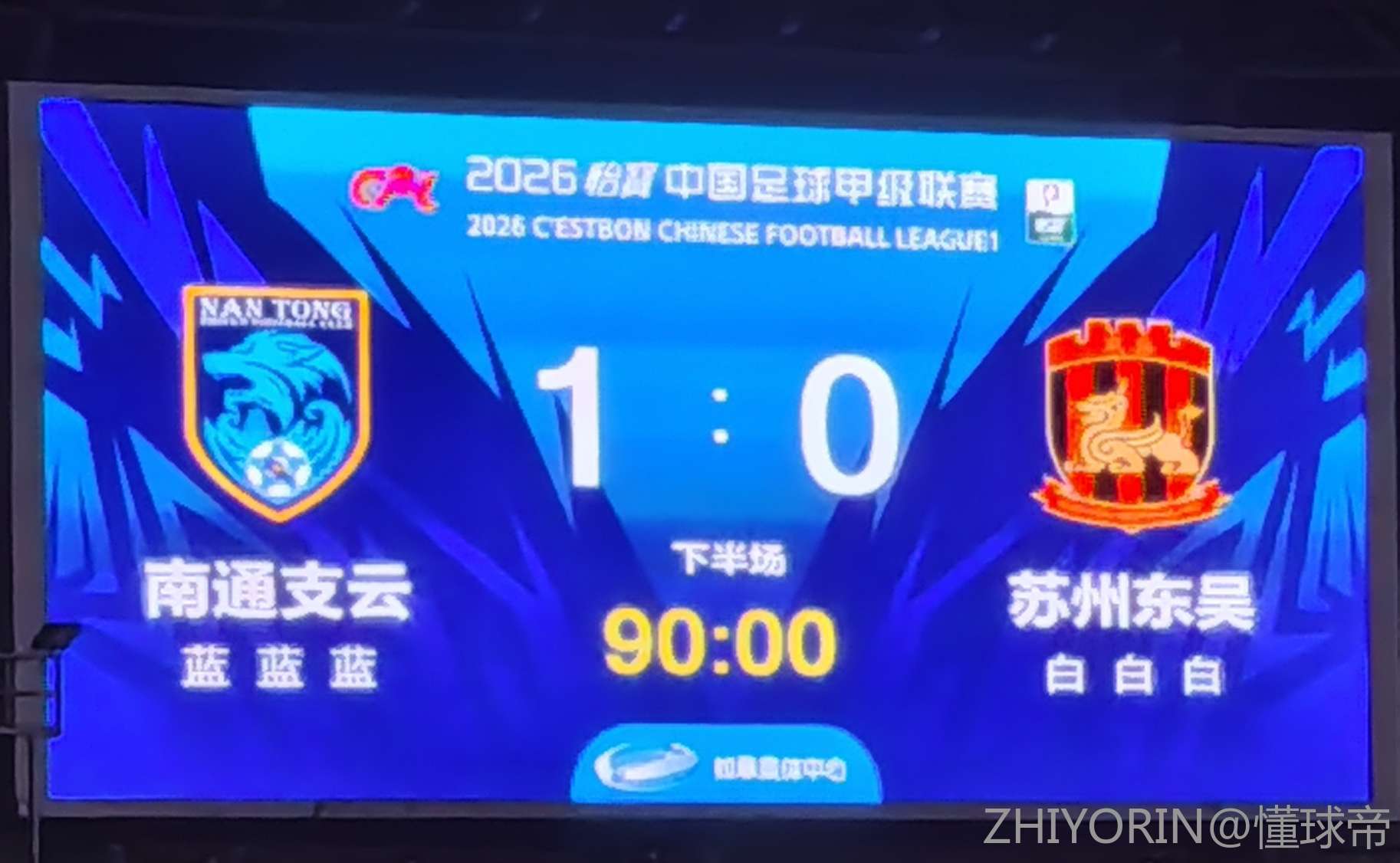 第90+4分钟,罗歆补射破门完成绝杀,南通支云1-0苏州东吴