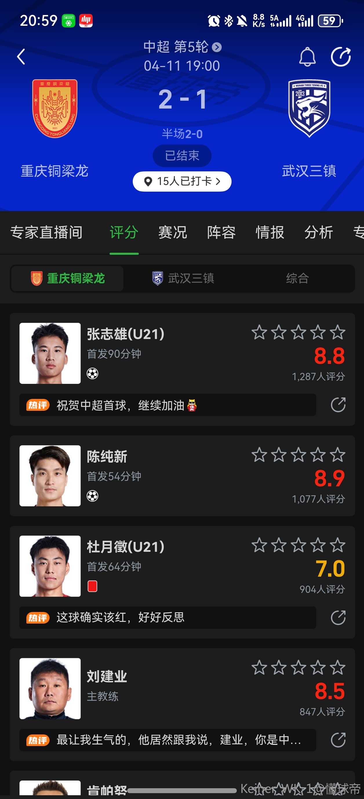 4月11日晚上,中超联赛第5轮,重庆铜梁龙主场2-1击败了武汉三镇,赛后,球员张志雄接受了瞬采。