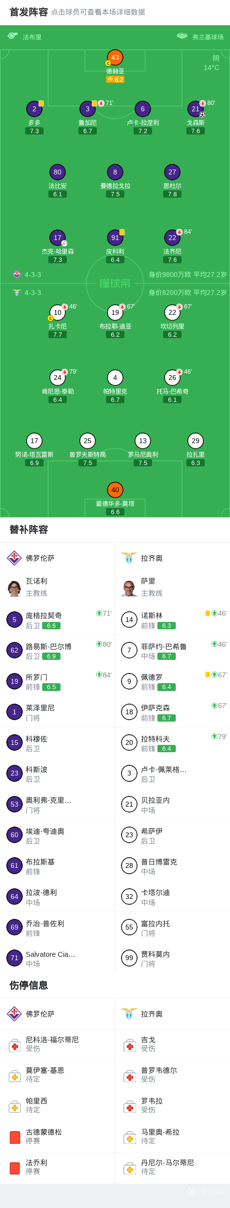 04-14 21:04📅赛程预告🏆欧协联1/4决赛次回合🆚佛罗伦萨vs...