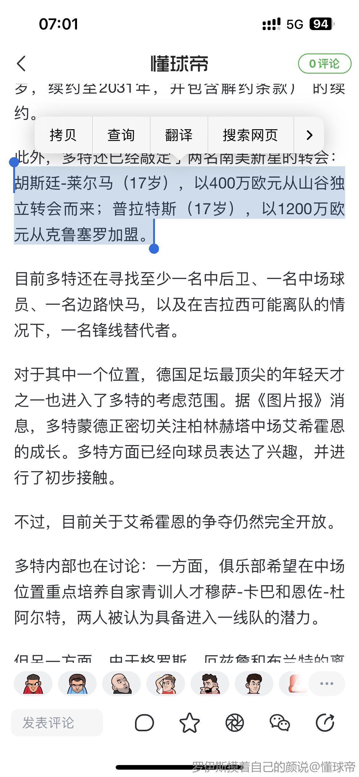 多特内部也在讨论:一方面,俱乐部希望在中场位置重点培养自家青训人才穆萨-卡巴和恩佐-杜阿尔特,两人被认为具备进入一线队的潜力。