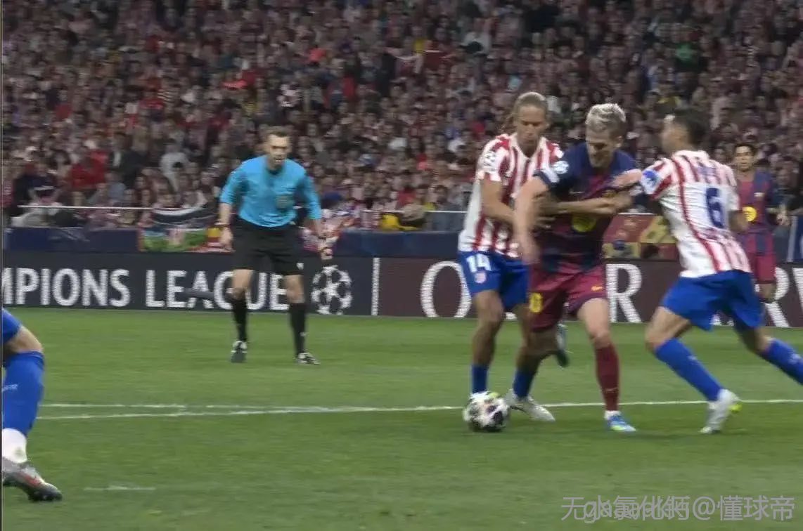 略伦特勒诺尔芒全该吃黄一张不掏,马竞犯规基本无视,这吹的真的可以