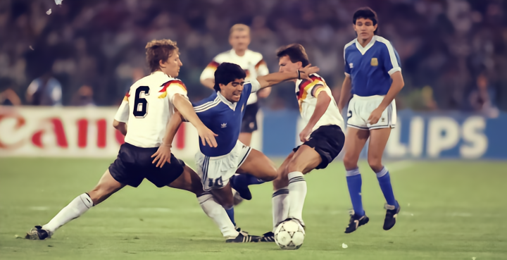 阿根廷队在1990年世界杯的小组赛里表现得并不顺利,他们首战就0-1不敌喀麦隆。虽然第二场小组赛2-0战胜苏联,第三轮又和罗马尼亚1-1打平。这让他们只能排在小组第三,但好在成绩最好的四个小组第三名也能出线,因此阿根廷磕磕绊绊地闯入了16强。