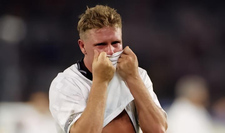 在都灵进行的另一场半决赛里,西德队对阵英格兰队。两队90分钟打成了1-1,鏖战到加时赛依然不分胜负。第98分钟,英格兰队中场加斯科因吃到了黄牌。这样一来,即使英格兰打进了决赛,他也将会因为累积黄牌停赛。梦想破灭的加斯科因顿时眼眶泛红,泪流满面,在场上哭了起来。这个画面通过电视转播,让全世界的球迷为之动容,也成了世界杯历史上的经典场景之一。