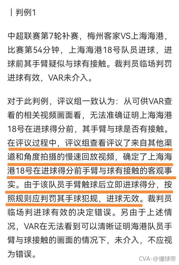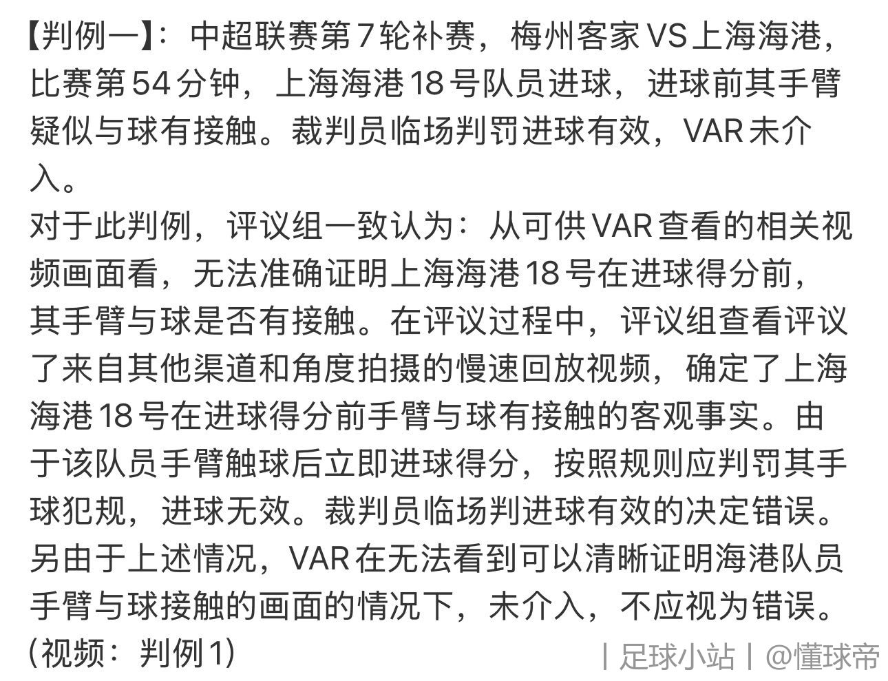 海港:在评议过程中,评议组查看评议了来自其他渠道和角度拍摄的慢速回放视频,确定了上海海港18号在进球得分前手臂与球有接触的客观事实。