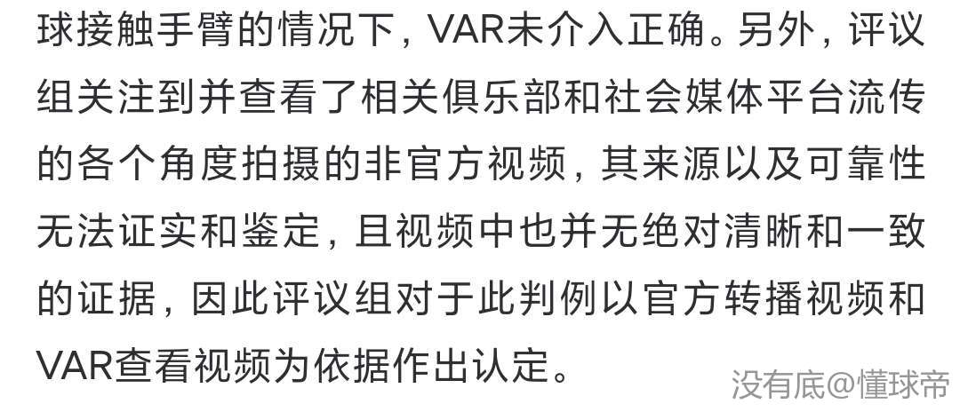 评论区是没看到具体解释吗,足协这次也参考了非官方视频,但是不足以支持「确定100%」误判,因此只可能维持原判