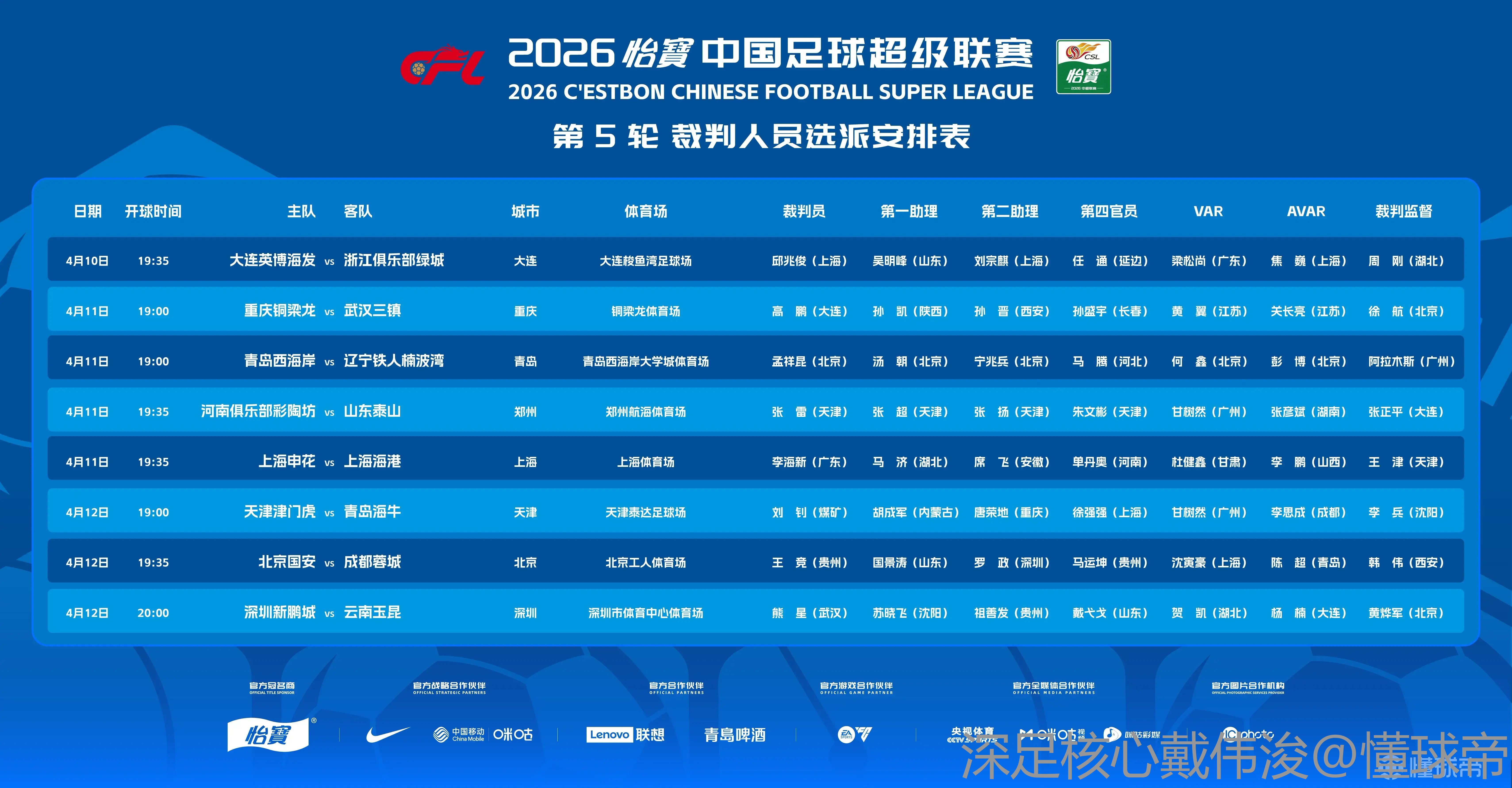 04-17 09:26中甲第5轮裁判:韩磊执法陕西vs南通,张杨帆吹广州豹vs梅州