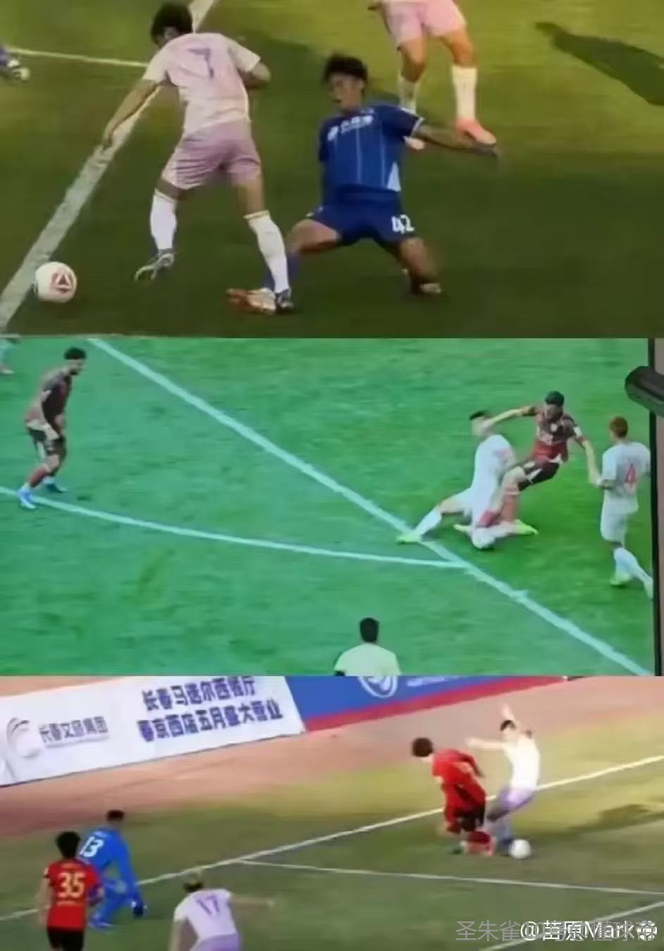 判例三:中超联赛第5轮,北京国安VS成都蓉城。比赛第14分钟,成都蓉城7号队员铲抢北京国安20号队员。裁判员判成都蓉城7号犯规并出示黄牌,VAR未介入。