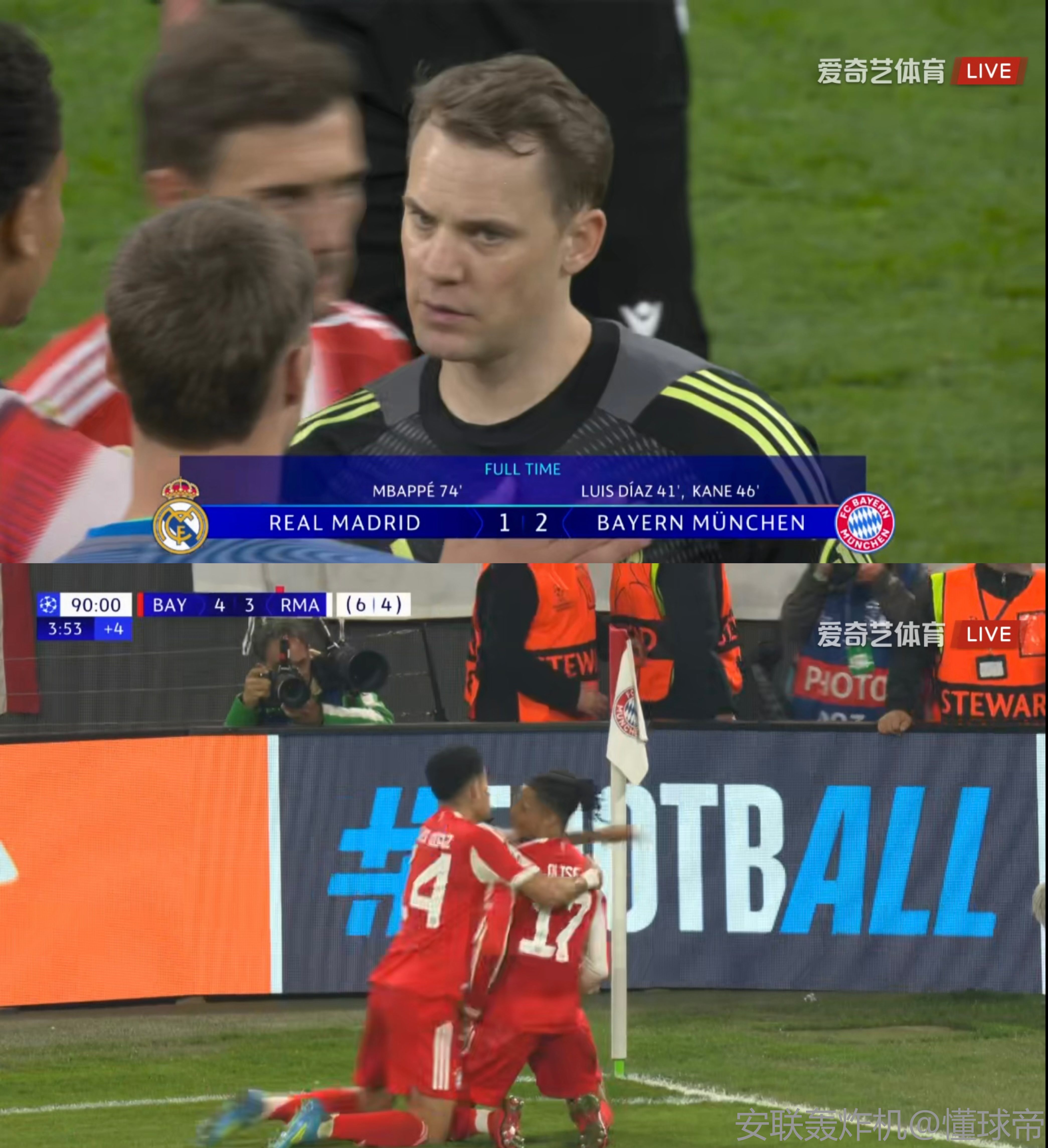 那些说皇马了拜仁的不知道球迷好好看看,皇马也是葱哈拉邵开始菜单追上拜仁了,但是团结一致,积极向上的拜仁还是照样踢回来。