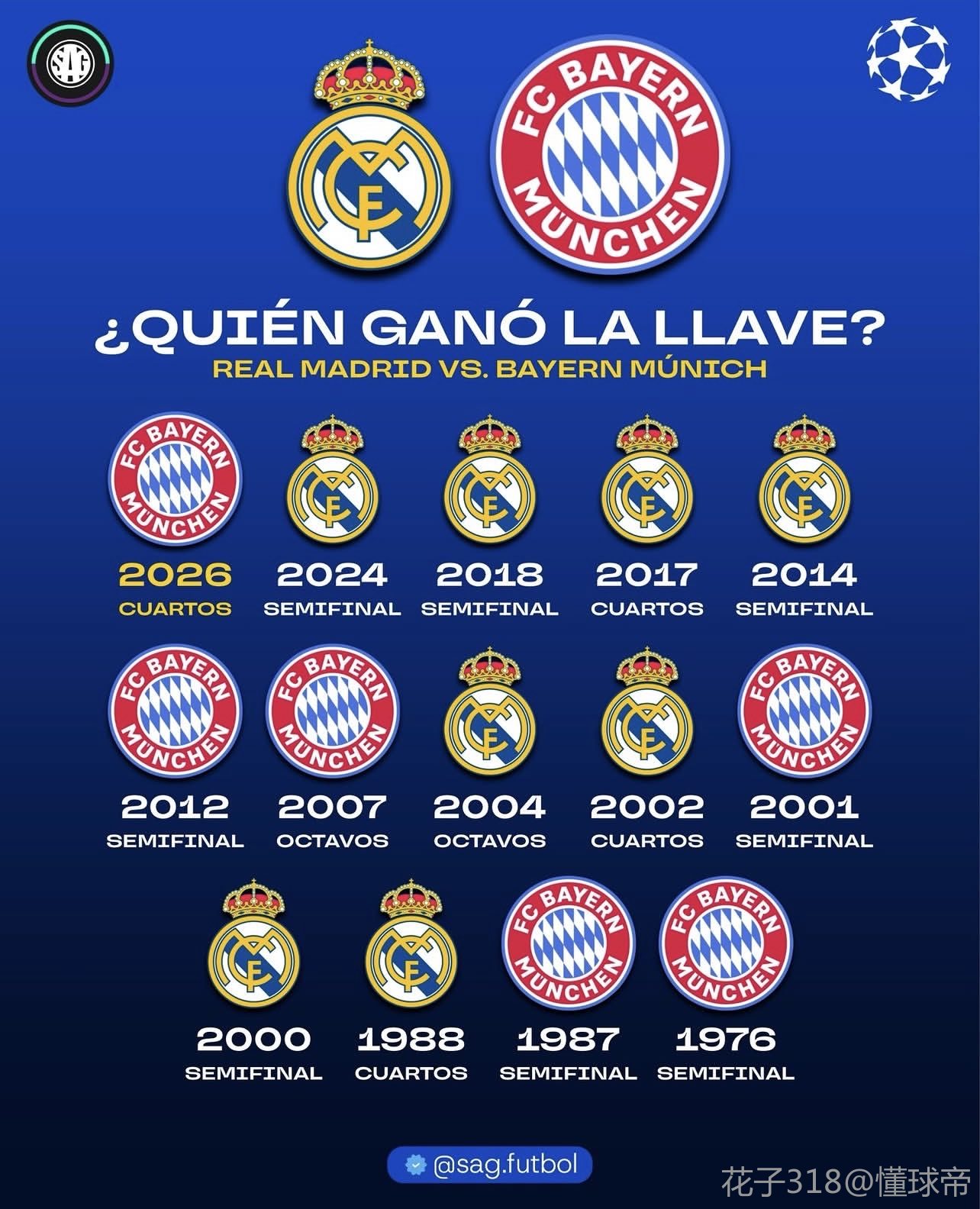 要不是最近几年拜仁对皇马的战绩太拉胯,本来是拜仁极大的优势