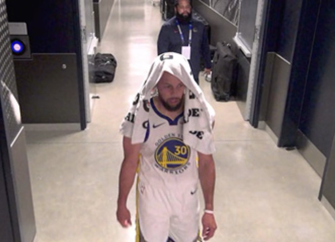 扫描下载懂球帝首页>动态> 虚惊一场,库里首节返回更衣室后重回替补席