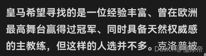 皇马希望寻找的是一位经验丰富、曾在欧洲最高舞台赢得过冠军、同时具备天然权威感的主教练,但这样的人选并不多。克洛普被视为理想候选,不过这位德国教练未必愿意重新出山,尤其是在接手一个已经有些僵化的更衣室的情况下。这个更衣室更突出的是个人主义,而不是投入程度和集体精神。