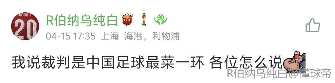 戴戈戈该不会再瞎吹害死我深圳新鹏程吧,提前给中足联提个请求,下一轮深圳主场对国安,派中超第一黑哨张雷来吧,球迷只想高兴高兴。