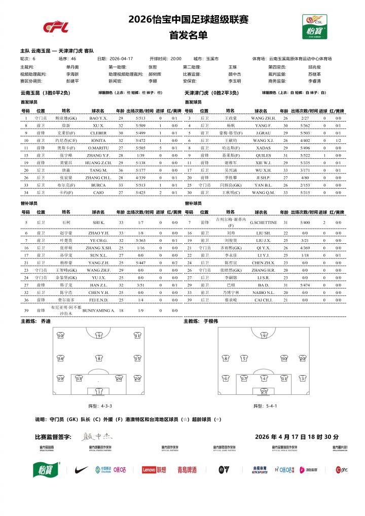 04-20 16:05云南玉昆比赛日💪 ⚽️赛事预告:2026怡宝中超...
