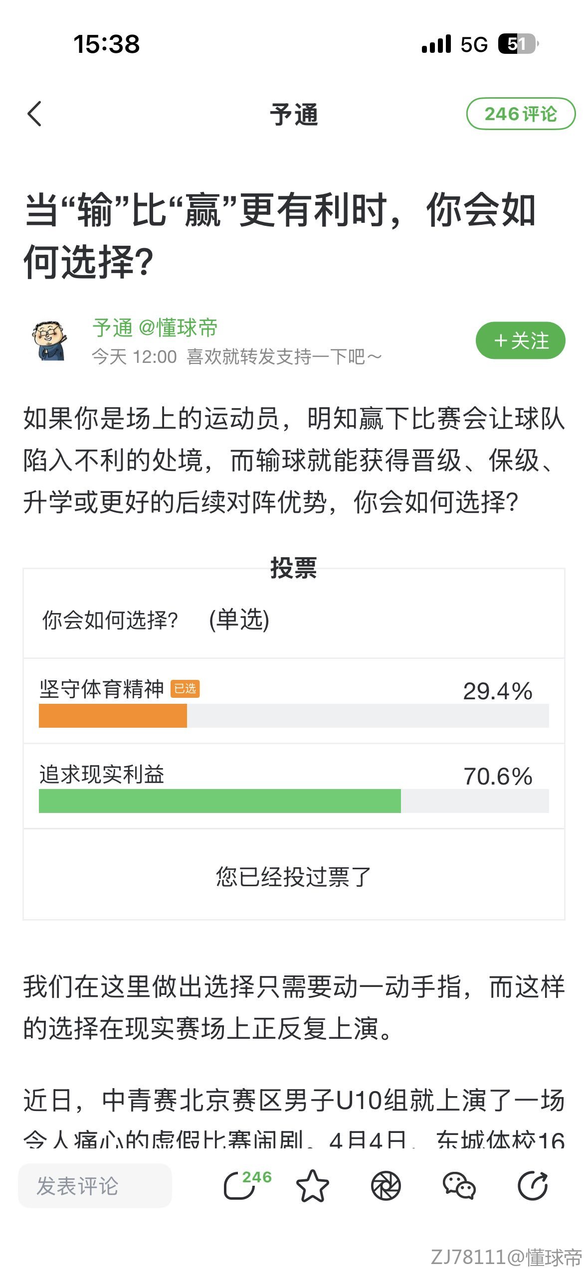 如果你是场上的运动员,明知赢下比赛会让球队陷入不利的处境,而输球就能获得晋级、保级、升学或更好的后续对阵优势,你会如何选择?
