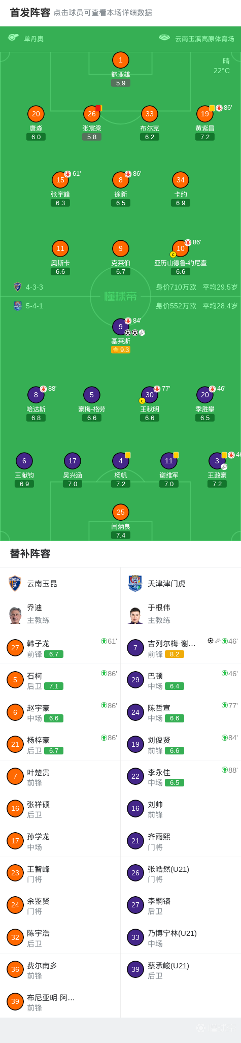天津3:0云南