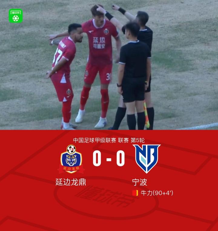 北京时间4月18日中国足球甲级联赛 联赛 第5轮,延边龙鼎主场对阵宁波。下半场李玮锋疑似不满判罚被罚下,随后黄振飞绝杀无效。最终比分延边龙鼎0-0宁波。
