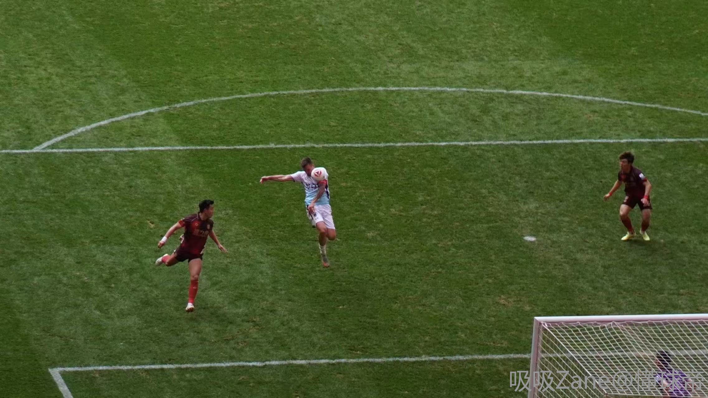 第39分钟,谭凯元无人盯防插上头槌,皮球偏出立柱