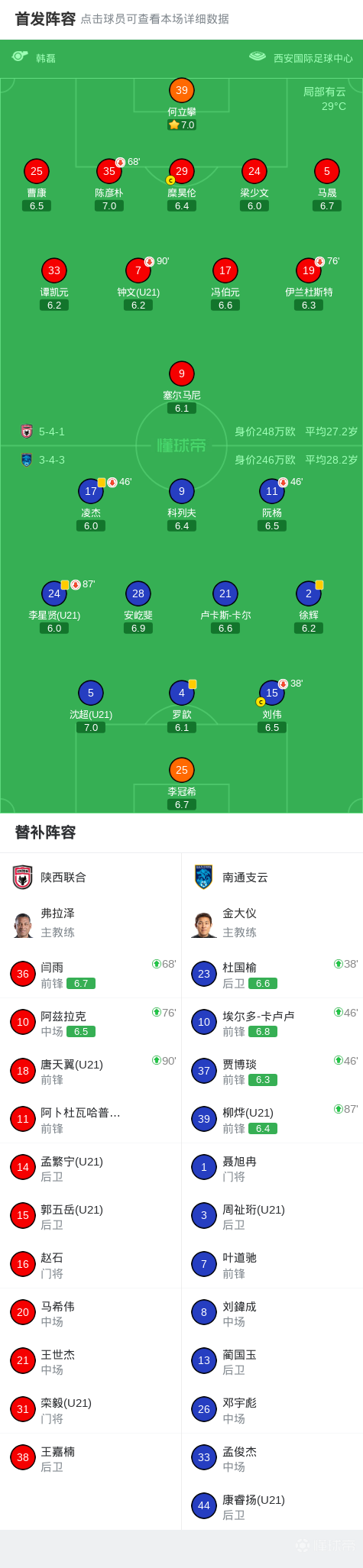 陕西联合0-0南通支云,科列夫进球被吹,谭凯元、钟文造险