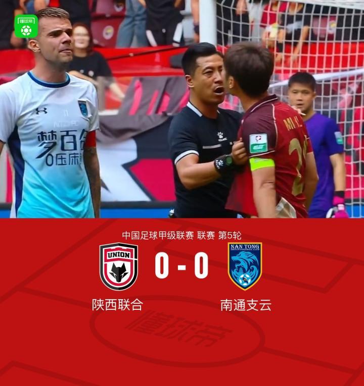 北京时间4月18日15:30,中甲第5轮展开争夺,陕西联合坐镇西安国际足球中心迎战南通支云,本场主裁判为韩磊。比赛中,科列夫打入一球因手球被判无效,谭凯元、钟文造险。最终,陕西联合主场0-0战平南通支云。