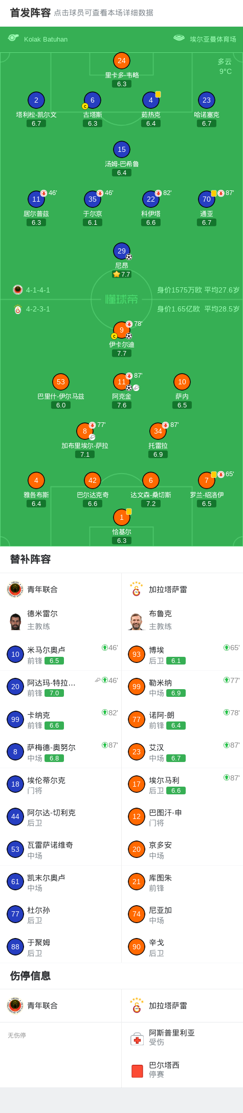 第35分钟,加拉塔萨雷球员加布里埃尔-萨拉助攻阿克金打入一球。