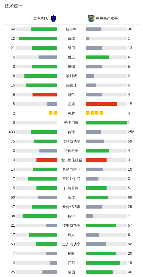 第19分钟,布莱尔斜传,奥古拉推射破门,中央海岸水手1-0奥克兰FC