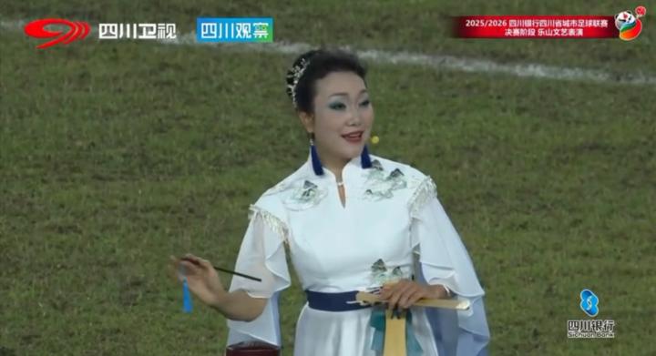 而这场主场秀最具诗意的部分,当属四川清音重新谱曲吟唱《峨眉山月》。李白笔下“峨眉山月半轮秋,影入平羌江水流”的意境,与四川清音清婉细腻的唱腔交融,让赛场在热血之外,多了一层温柔而深远的文化回响。对于外地球迷和游客而言,这样的设计尤其动人:一场球赛,还能听见诗意四川、看见故园之月、感受川南文脉的悠长。