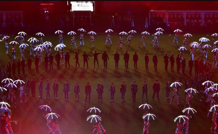 更具辨识度的是情景表演“产城新区·场景嘉年华”。灯光秀、16块移动屏、发光伞舞,再加上“熊猫超哥”作为叙事导游,共同搭建出一个带有未来感和沉浸感的科幻舞台。科创实力、商业地标、消费热点、都市面貌被融入舞台叙事中,这既是一次赛事演出,也是一场极具城市营销意味的形象展示。
