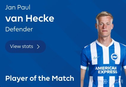 扫描下载懂球帝首页>动态> 防守稳健,范赫克当选布莱顿vs切尔西全场最佳球员