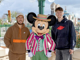 阿扎尔与四弟同游巴黎迪士尼,并晒出两人与米老鼠合影
