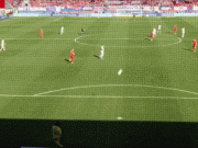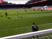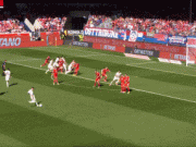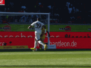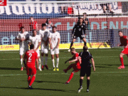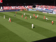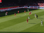 贝斯特任意球直接射门,球稍稍高出横梁